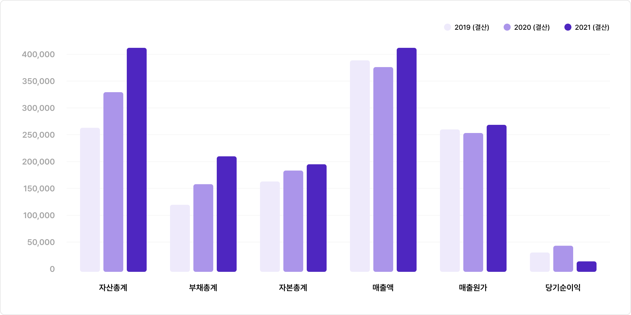 | 손익계산서 | 매출액 | 386,234 | 382,343 | 400,233 |